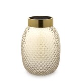Elegancki transparentny szklany wazon, z oryginalną metalową złota szyjką i wfakturą szkła przypominającą owoc ananasu. Wazon doskonale eksponuje kwiaty żywe i sztuczne rośliny. Jest klasyczną dekoracją w każdym wnętrzu.