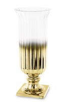 Elegancki transparentno - złoty szklany wazon, w oryginalnym kształcie amfory, kielicha. Wazon doskonale eksponuje kwiaty żywe i sztuczne rośliny. Jest klasyczną dekoracją w każdym wnętrzu.