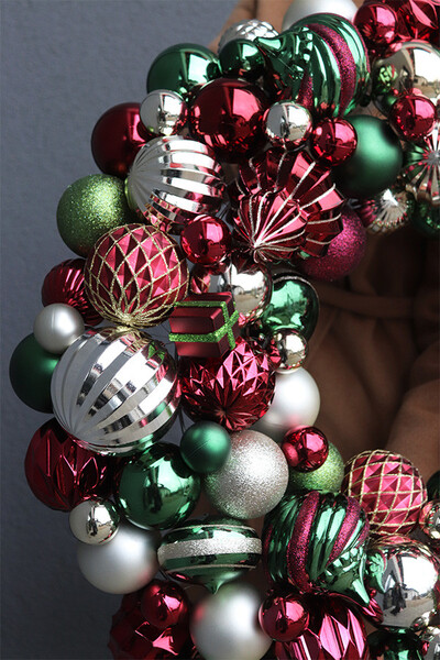 Wianek z bombek to idealna bożonarodzeniowa dekoracja dla firm, do wnętrz mieszkalnych, salonów sprzedaży i hoteli.
