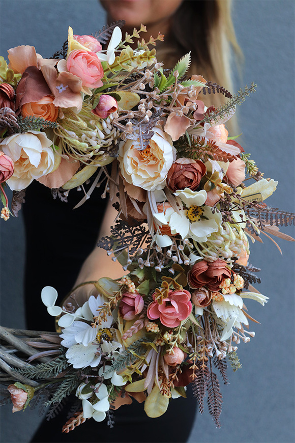 Piękna, barwna dekoracja na drzwi, ścianę, taras i na stół, jako stroik.