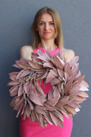 Wrzosowisko Capuccino, dekoracyjny wianek boho z liści i traw, śr.46cm